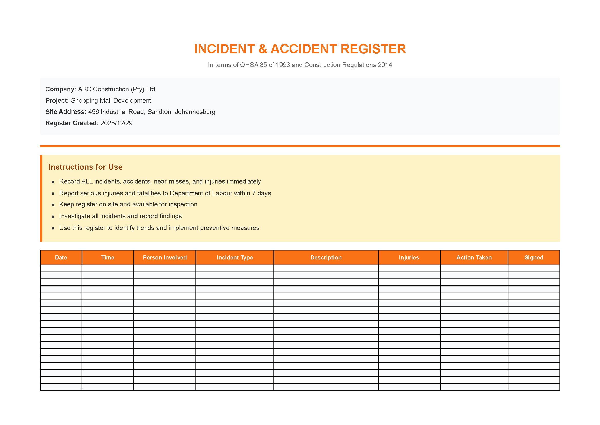 Pre-formatted registers to keep your site compliant and audit-ready.